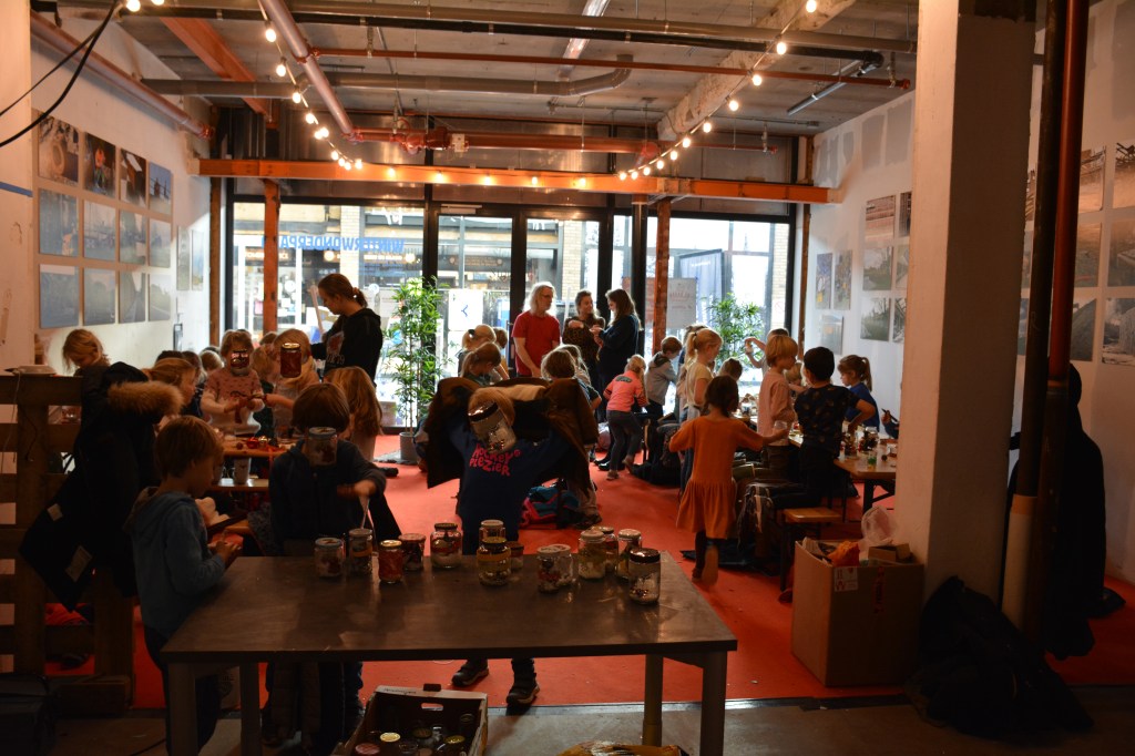 With a bit of help I transformed one of the empty store premises into the homebase of winter related activities. The goal was to make sustainable winter related decorations that would reflect the neighborhood. All the main construction materials where all leftovers from the renovation.